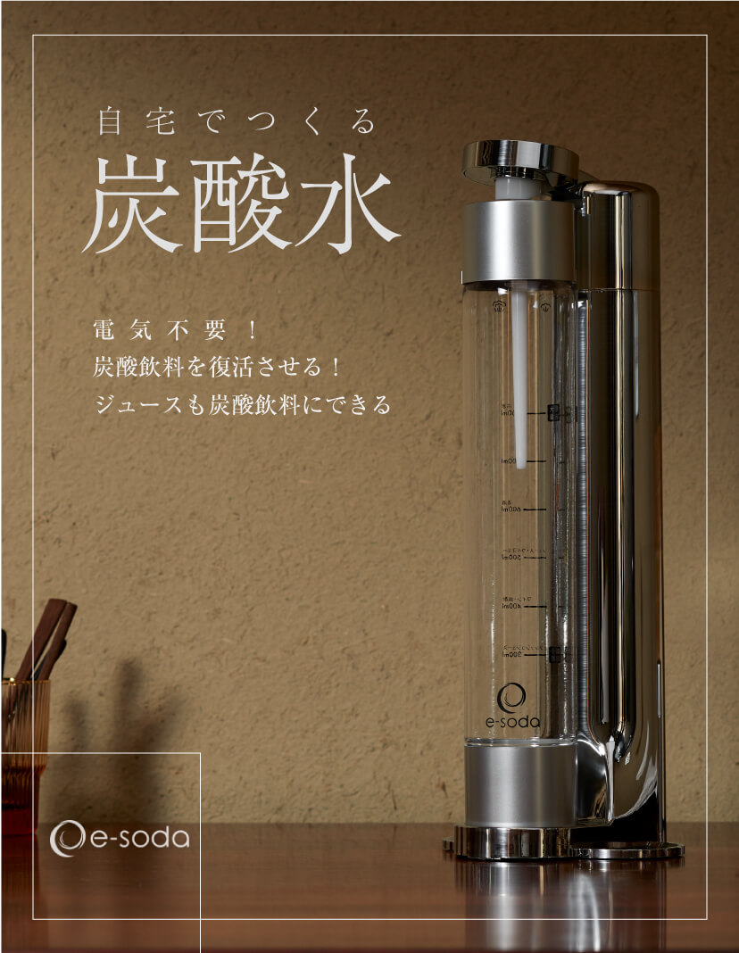 昨今の日本は電気代の高騰が激しくなってきております。ですが、このe-sodaは電源不要となりますのでご安心ください。加えて、アウトドアなどの様々シーンで炭酸水を精製できます。